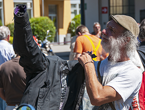 Si può riconoscere facilmente il fotografo professionista in mezzo a una folla di turisti: è quello che nasconde la sua macchina fotografica.